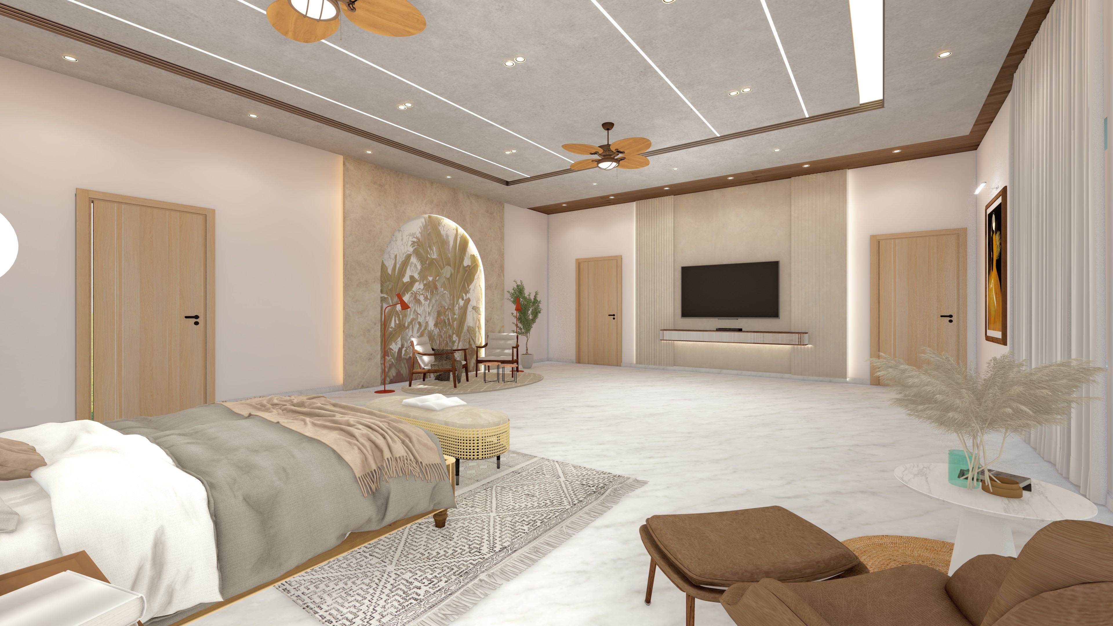 To design and execute the interiors of a 15,000 sq.ft premium villa, crafting spaces that exude luxury while maintaining warmth and comfort. The goal was to achieve a cohesive design language that enhances the architectural character of the villa and caters to the client’s refined lifestyle.
