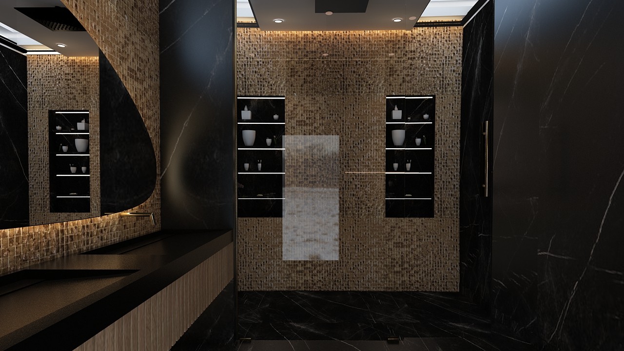 Integration of luxury materials, curated lighting, and bespoke detailing to enhance the spatial experience.