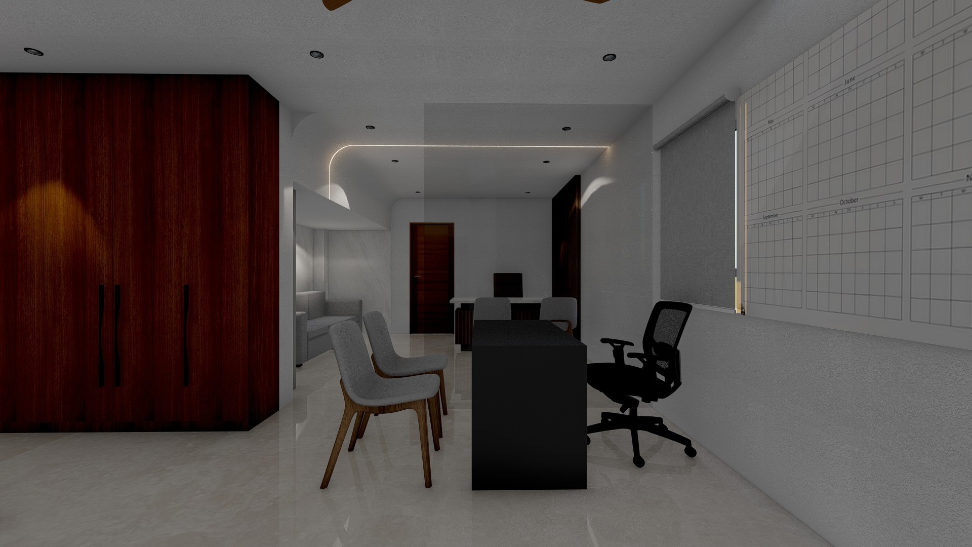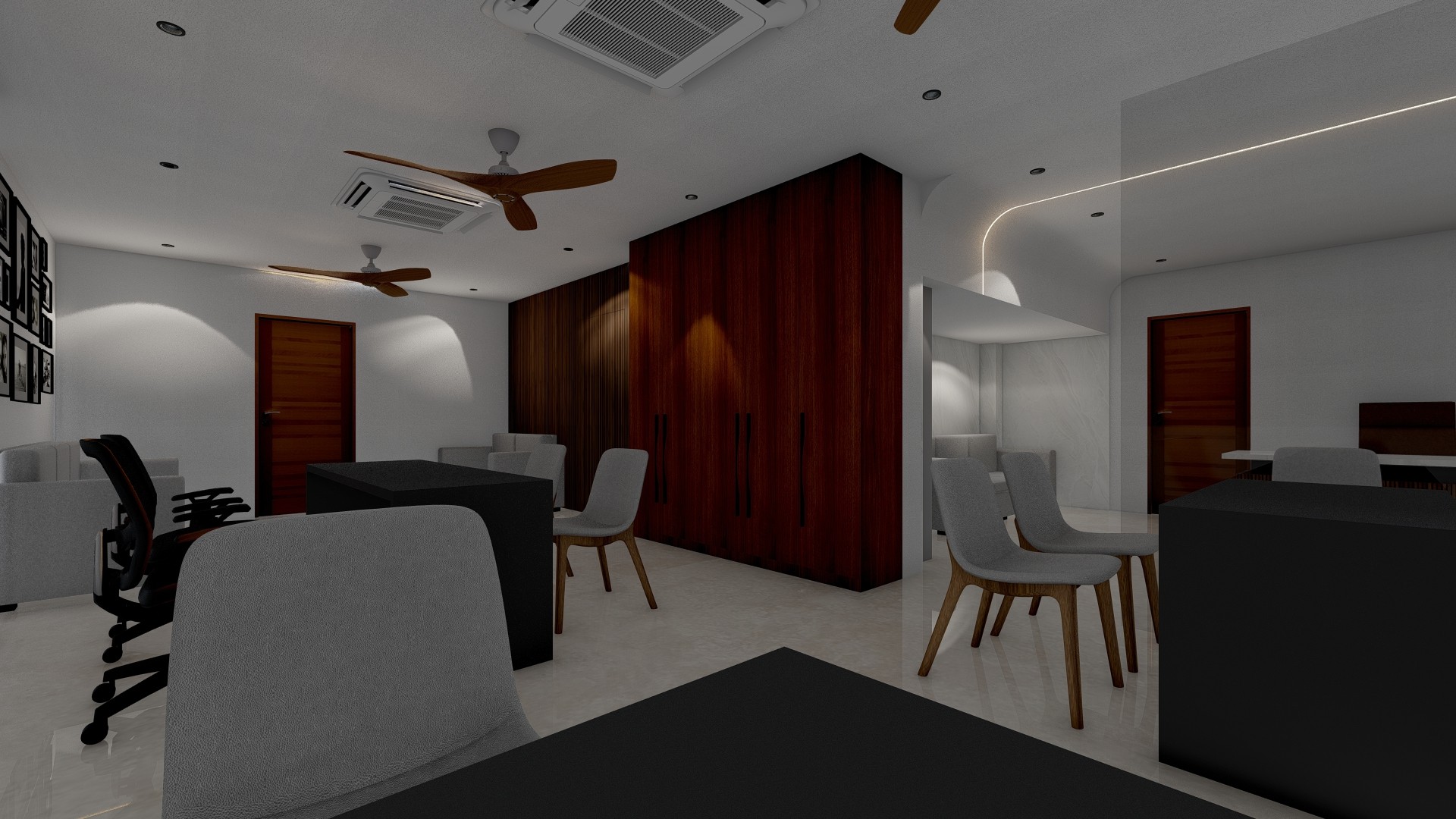 The Ramalakshmi Paradise Office renovation was envisioned to transform the existing workspace into a simple, elegant, and efficient environment. The design focuses on clean lines, balanced proportions, and a subtle material palette that reflects professionalism and warmth. Thoughtful space planning and modern finishes were incorporated to enhance functionality while maintaining a calm and welcoming atmosphere, perfectly aligning with the client’s vision for a refined and contemporary office setting.