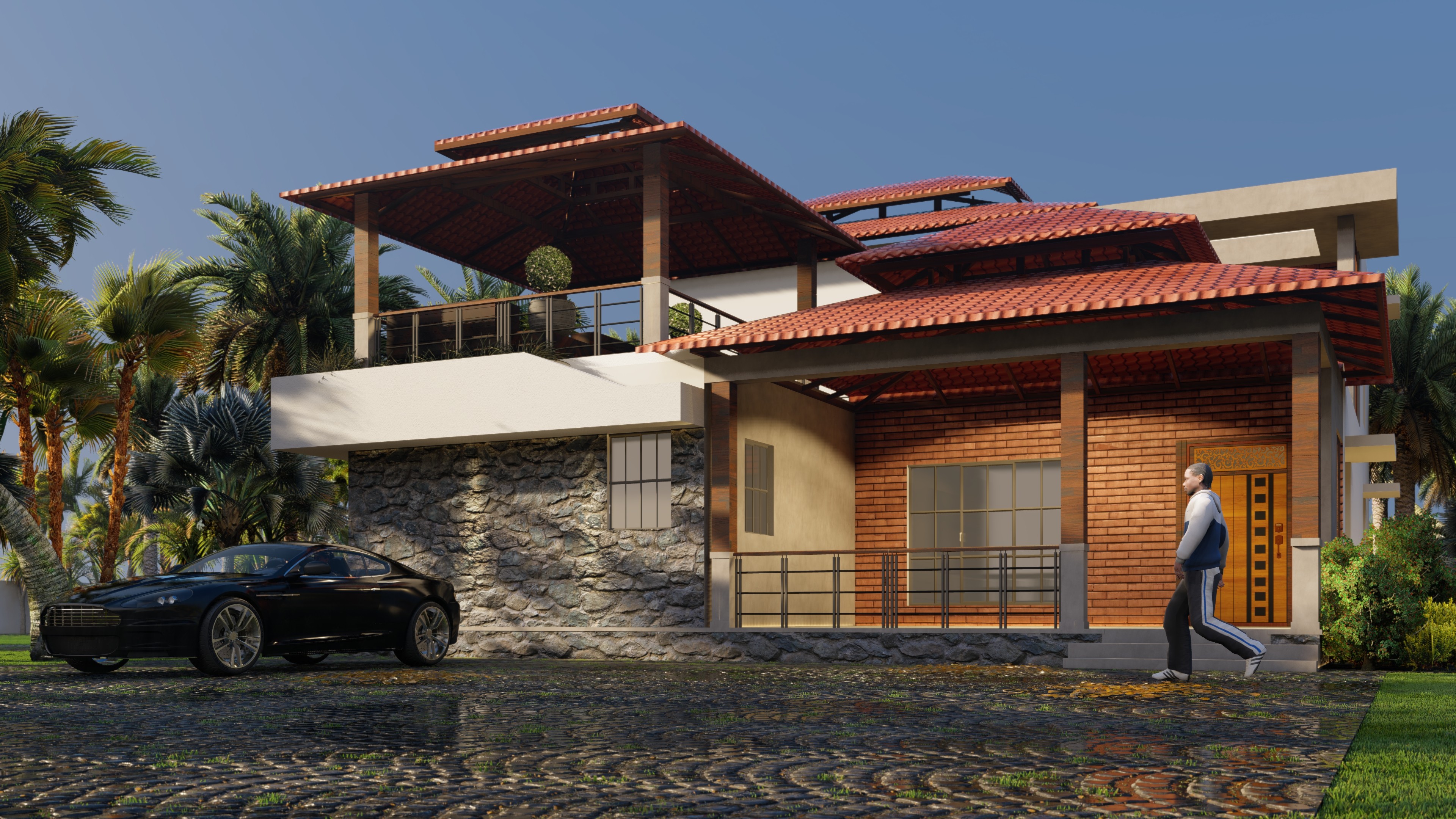 The client desired a home that beautifully blends traditional Kerala architecture with a modern contemporary lifestyle. Their vision was to create a warm, character-filled residence that reflects cultural roots while embracing present-day comfort, openness, and functionality.
