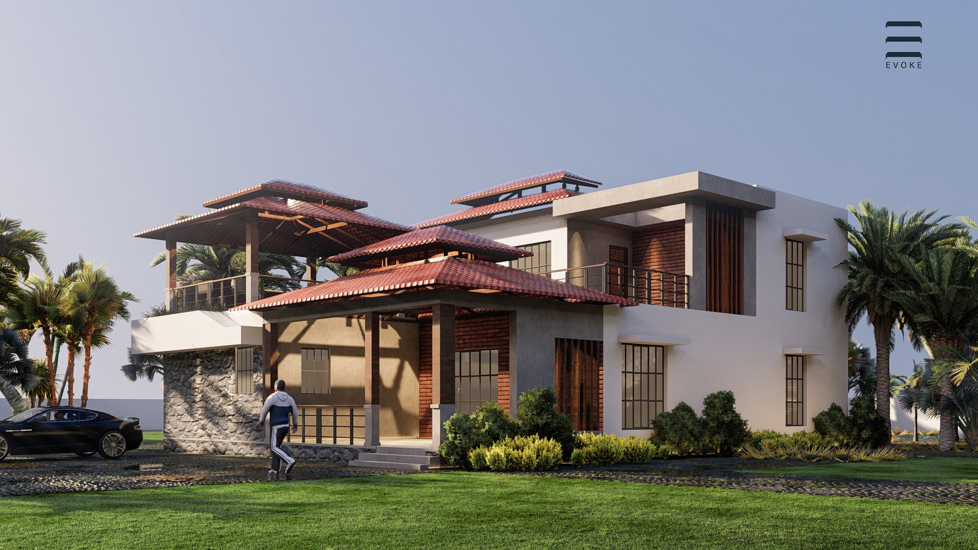 To design a residence that merges the timeless aesthetics of Kerala style — including sloping roofs, wooden details, and natural textures — with contemporary elements such as clean lines, large windows, and minimalist interiors. The goal was to achieve a perfect balance between heritage charm and modern sophistication.